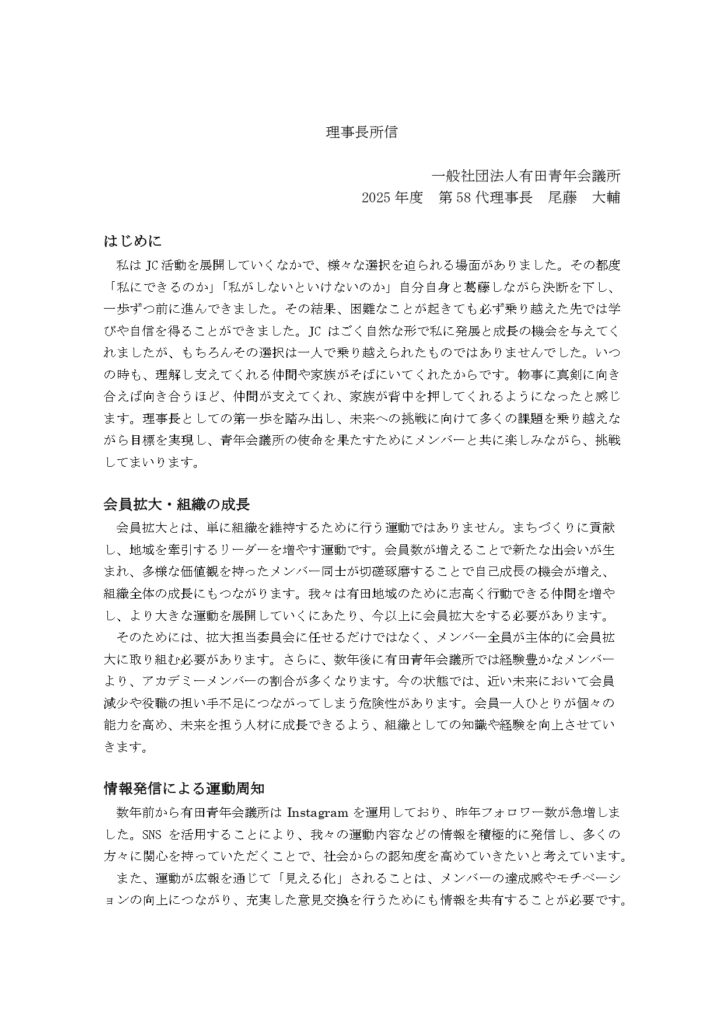 理事長所信